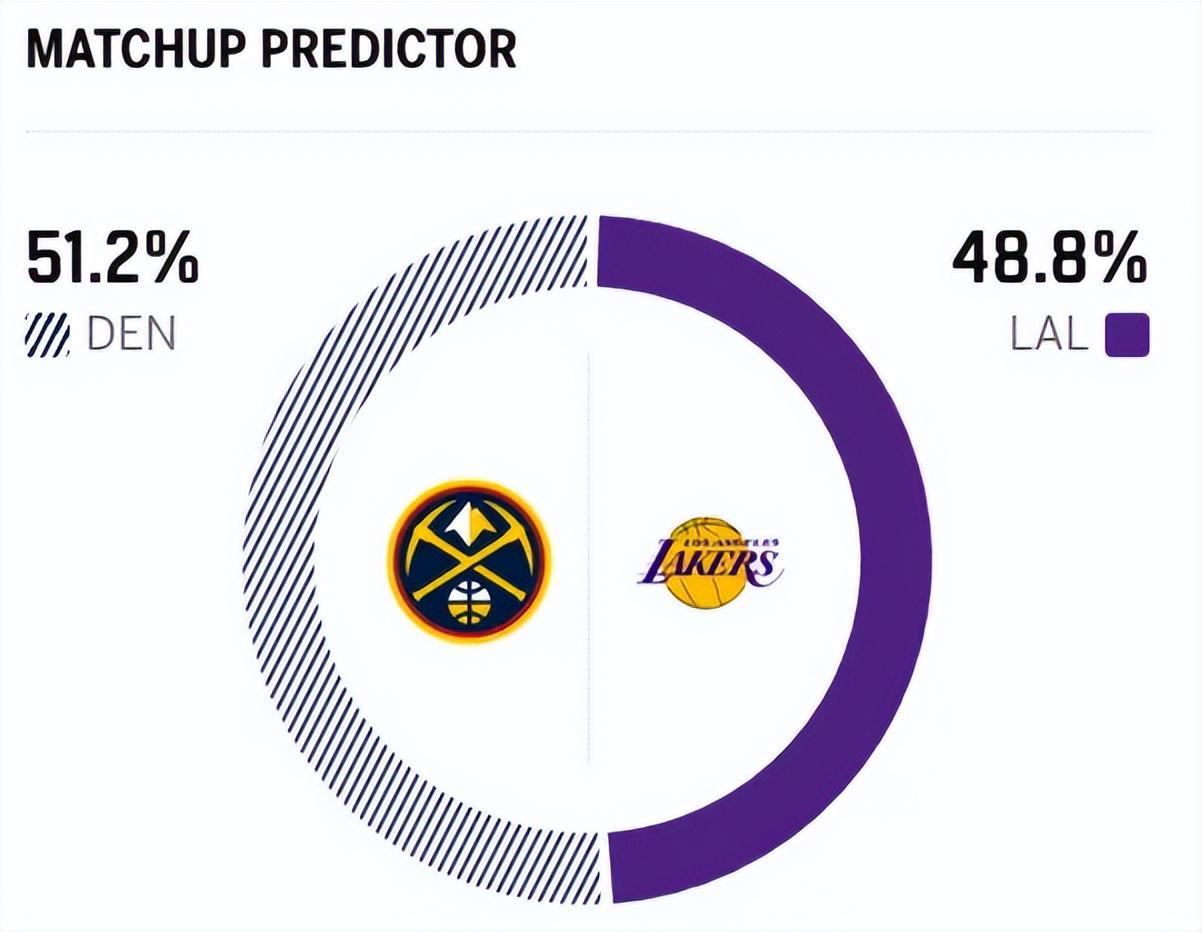 赛前,美媒ESPN对本场比赛进行了胜率预测,湖人队胜率48.8% ,掘金胜率则为51.2% ,算是半斤八两 。